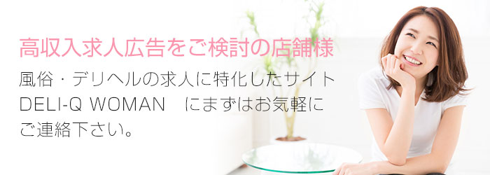 掲載をご希望される店舗ご担当者様は同時掲載される風俗デリヘル情報「デリ王」にてお申し込みを承っておりますので、お気軽にお問い合わせ下さい。すでに「デリ王」に掲載済でDELI-Q WOMANに掲載されていない店舗様はこれを機会に是非ご活用下さい。
